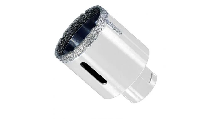 Diamant droogboor voor gebruik zonder waterkoeling in tegels en natuursteen op haakse slijper.