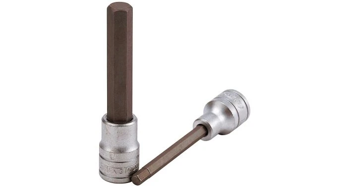 Lange uitvoering. mm-uitvoering. Chroom vanadium. Matverchroomde uitvoering. Dopbit 1/2 Hex 12mm L.100mm