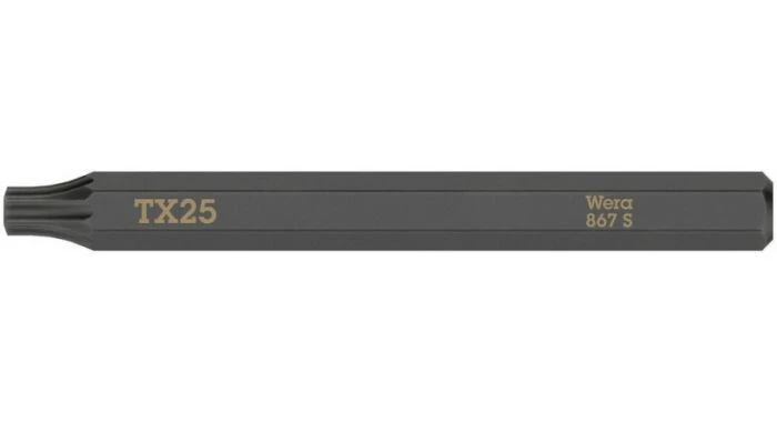 Extra sterke bit voor TORX®-inbusschroeven. Dit voorkomt dat het bit voortijdig breekt en verlengt de levensduur. Geschikt voor gebruik met Wera slagschroevendraaier 921. Met 1/4″ zeskantaandrijving.