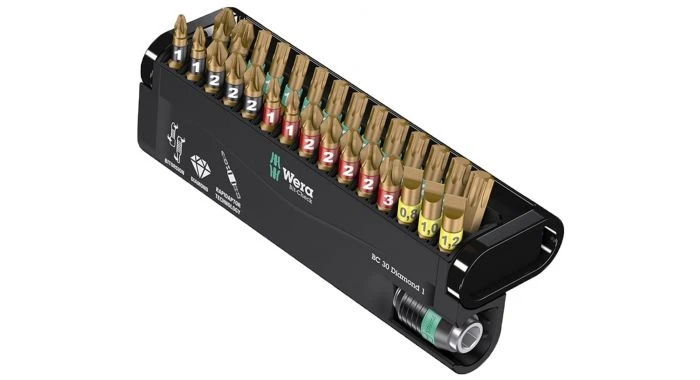 Bits met minuscule diamantdeeltjes op bitpunt. Deze zorgen voor een veilige grip op de schroef, verkleinen de vereiste aandrukkracht en reduceren het risico op wegglijden. BiTorsion-bits met torsiezone, waarin bij belastingspieken kinetische energie wordt afgeleid. Met zachte BiTorsion-zone om torderen van de bit-punt bij hoge belastingen te voorkomen. Hierdoor wordt de levensduur van het product aanzienlijk hoger. Voorzien van Rapidaptor-technologie, om de bits te kunnen plaatsen zonder daartoe de huls te moeten bedienen. Om de bits weer te verwijderen, hoeft u de huls slechts naar voren te schuiven – zo kunt u bits zelfs met 1 hand razendsnel wisselen. Voor plaatsing in de schroefboormachine of in boorkop van een elektronisch geregelde boormachine.